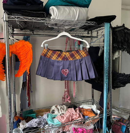 Checked skirt with embroidered heart