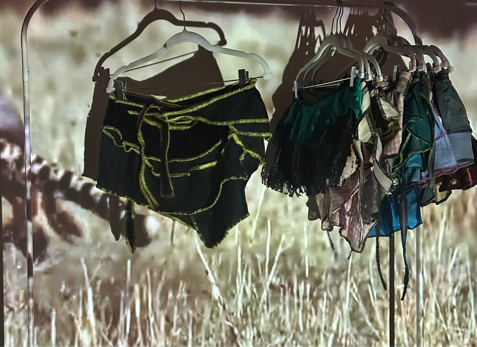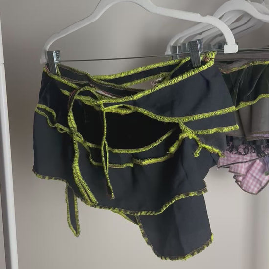 Gonna cintura creata a partire da scarti di tessuto d’archivio.