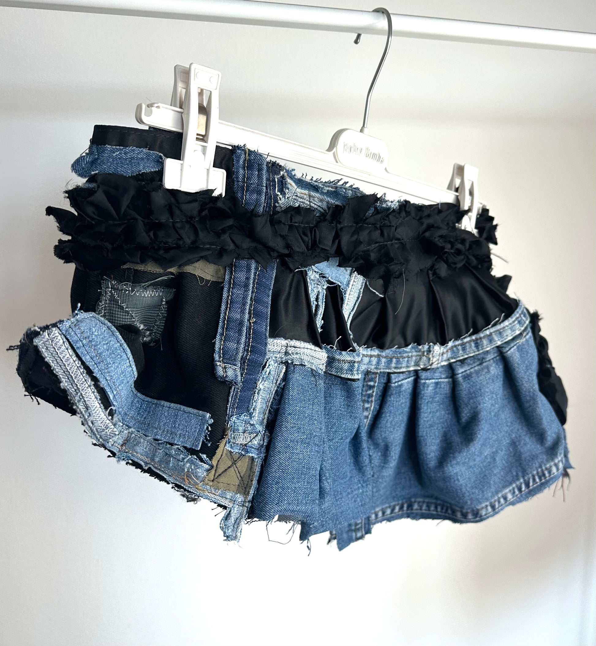 Gonna cintura creata a partire da scarti di tessuto d’archivio.
