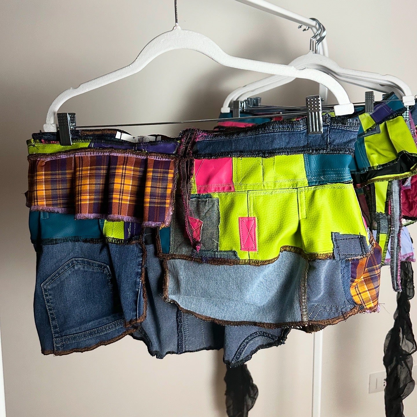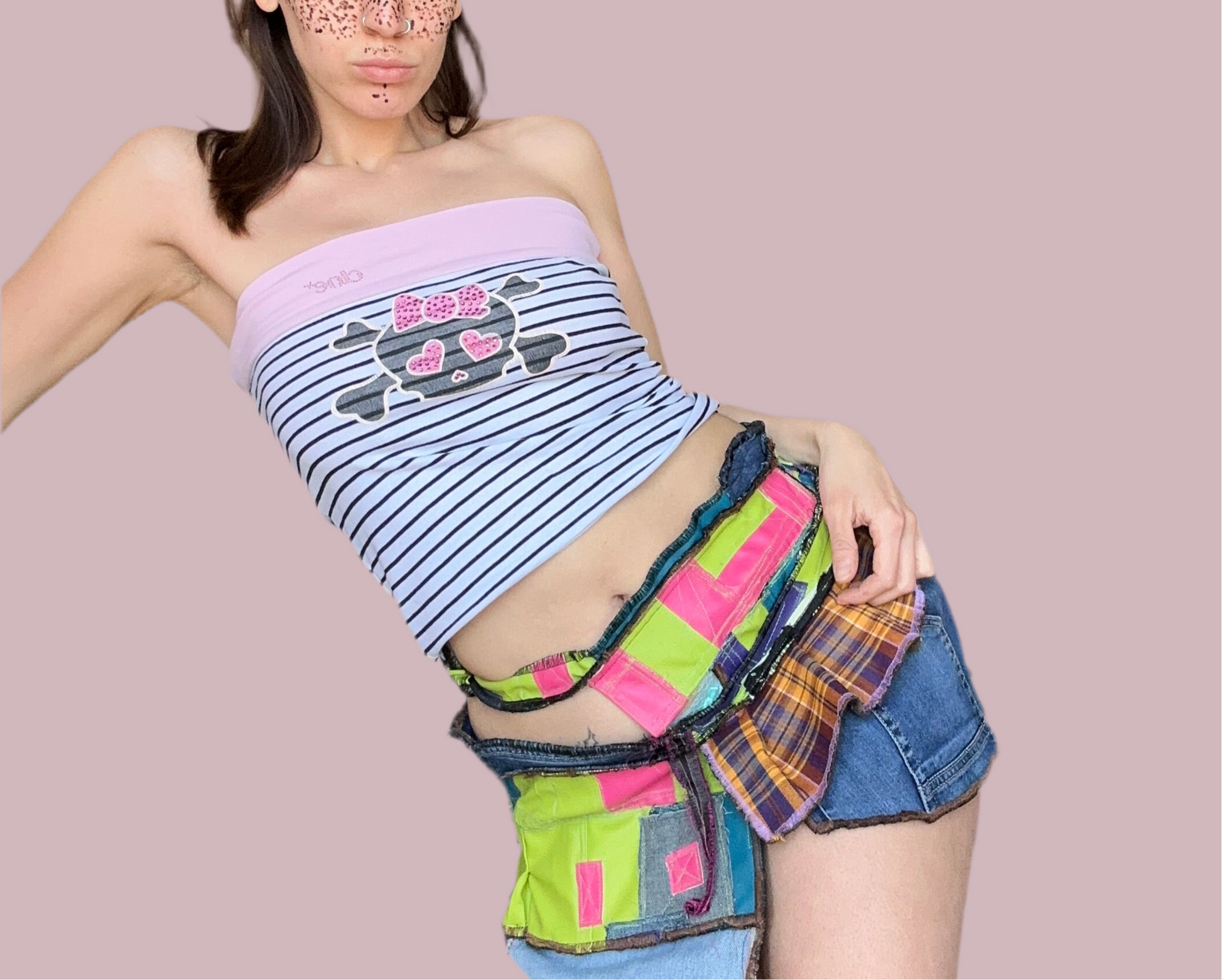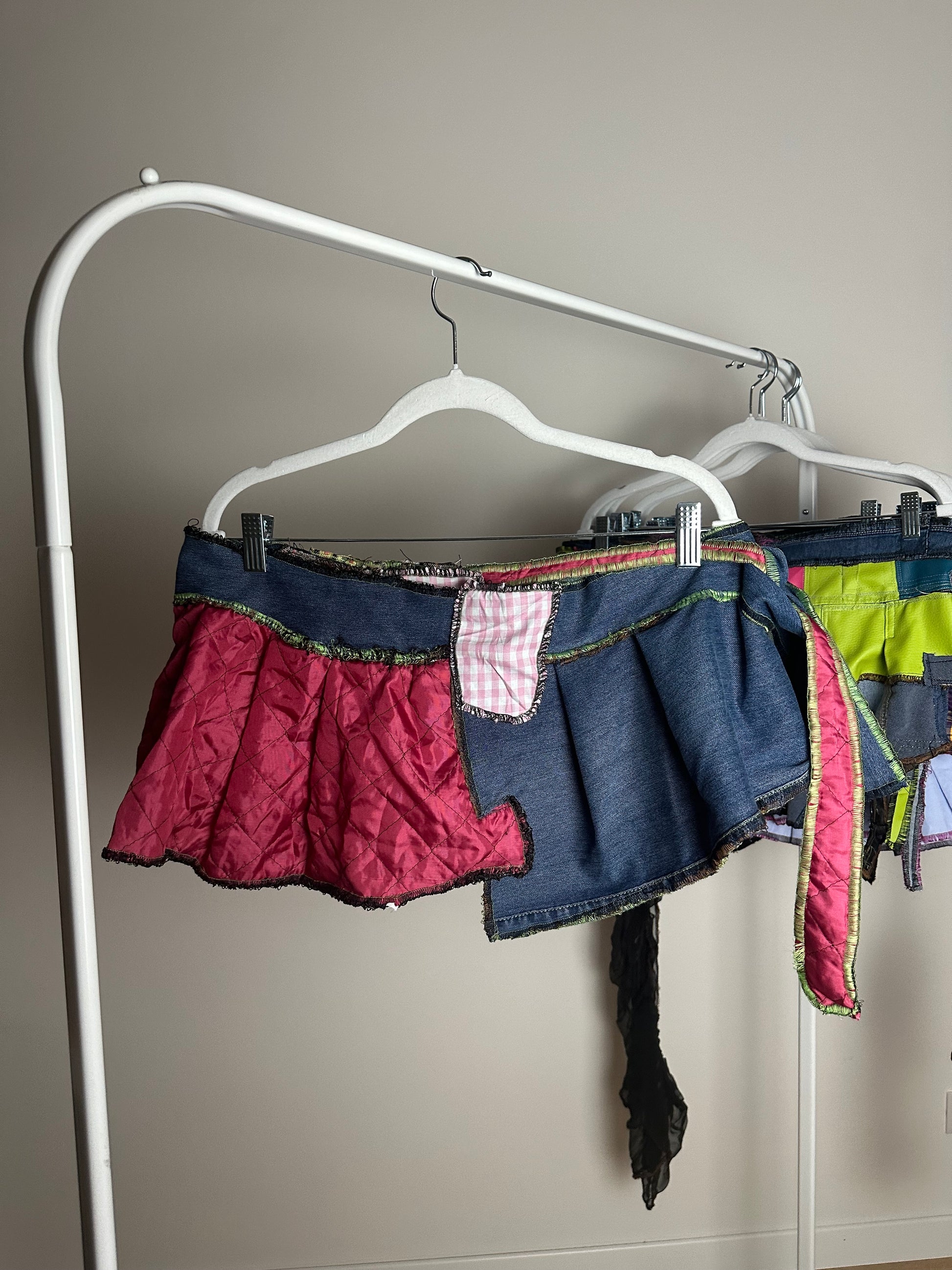 Gonna cintura creata a partire da scarti di tessuto d’archivio.