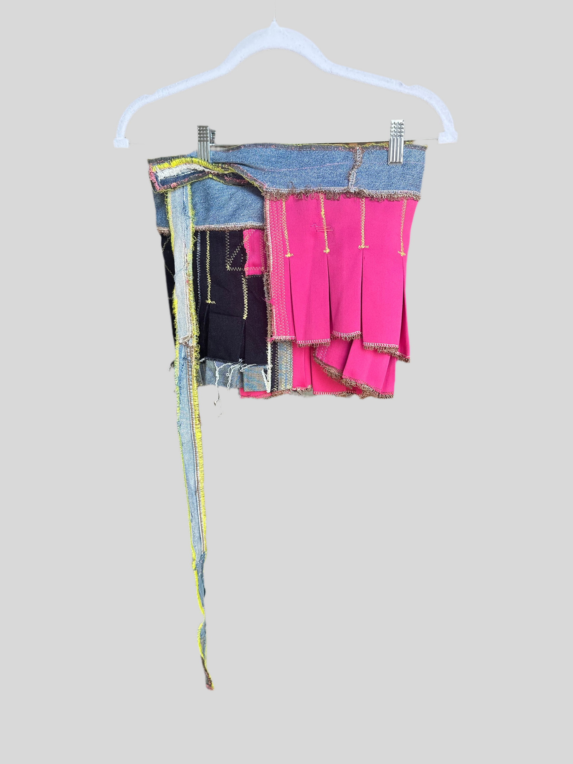 Gonna cintura creata a partire da scarti di tessuto d’archivio.