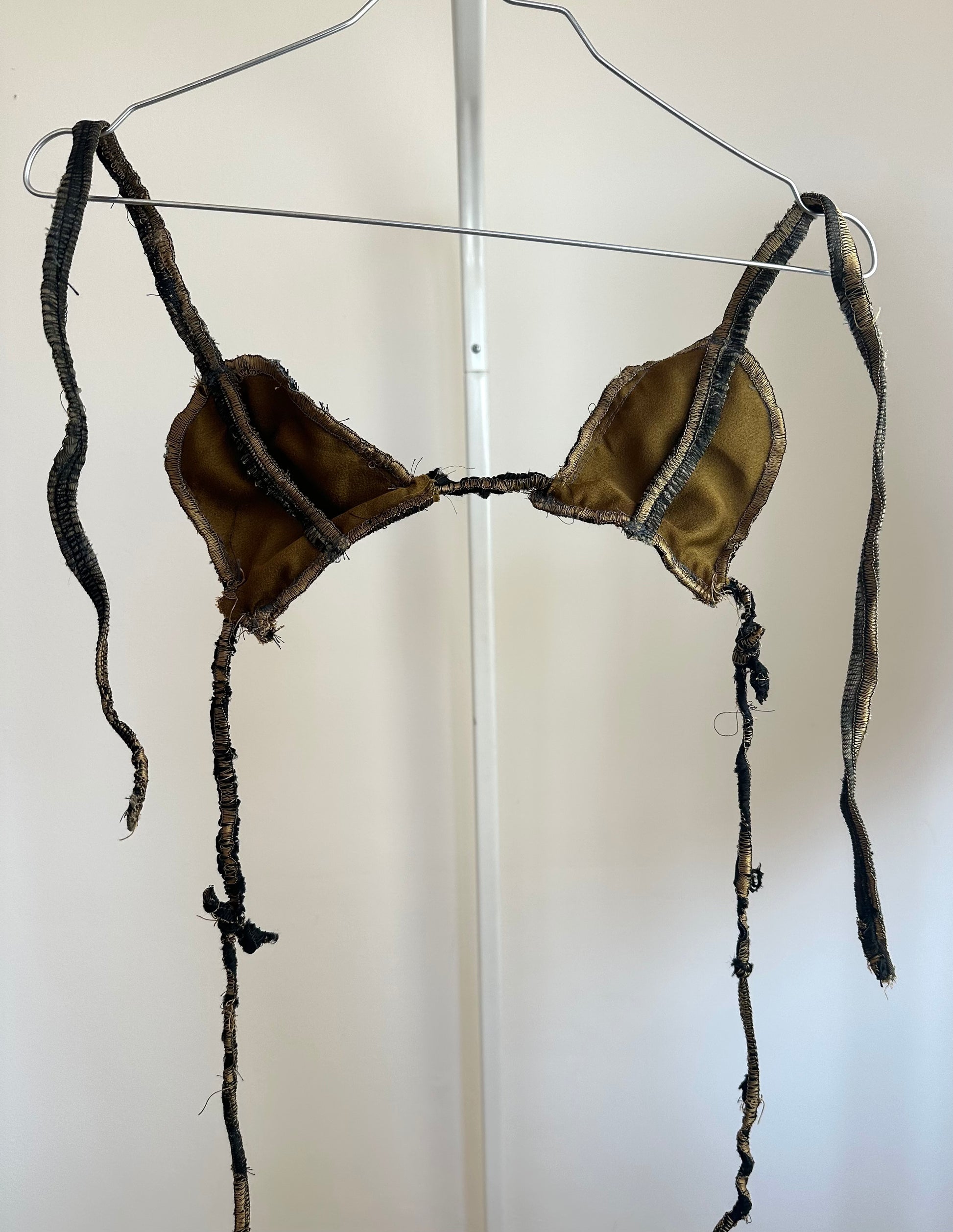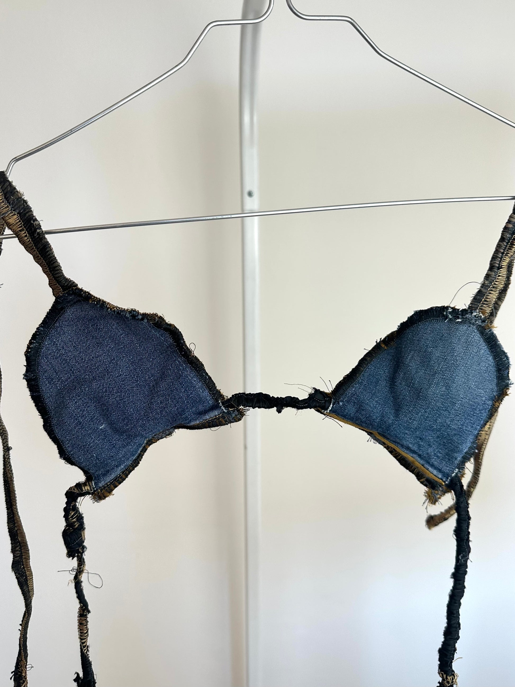 Top creato a partire da tessuti di scarto. È possibile indossarlo in più modi, carino anche al di sopra di altri top.